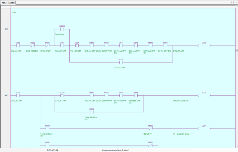 Modułowa struktura programu wpływa na wydajność systemu sterowania oraz utrzymanie porządku w kodzie programu. Fragment programu z urządzenia do formowania kartonów przedstawiono poniżej.